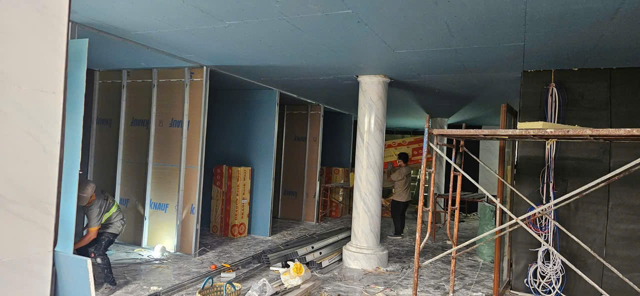 - *Xử lý sàn và trần:* Lắp đặt hệ thống sàn nổi hoặc trần thạch cao để giảm truyền âm qua kết cấu.