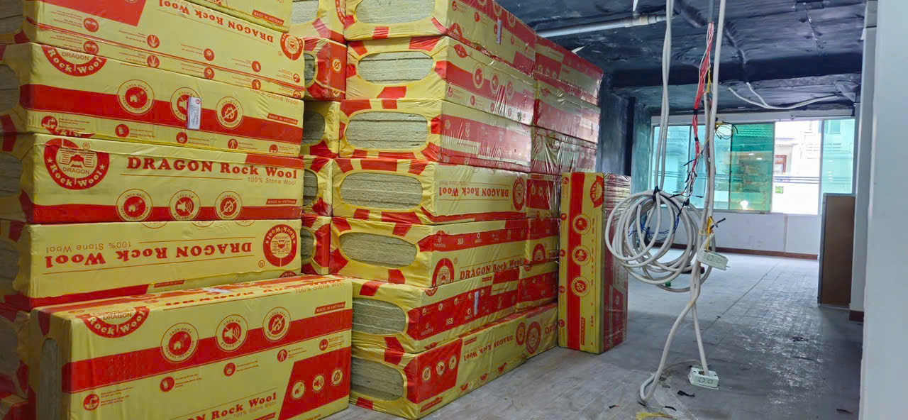 - *Bông thủy tinh hoặc bông khoáng:* Sử dụng làm vật liệu填充 trong các kết cấu tường hoặc sàn để hấp thụ âm thanh.
